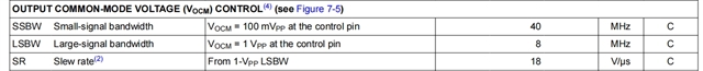 I saw in the THS4552 data sheet that there is a parameter for the VCOM pin's bandwidth. What's the difference between this bandwidth and the previous one? I'm not quite clear about the bandwidth parameter of the VCOM pin. Shouldn't the VCOM pin be a fixed value? What are the SSBW and LSBW of the VCOM pin used for?