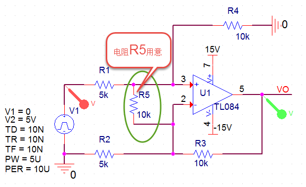 增加R5电阻,对应的输入输出波形,输出波形尖峰较小