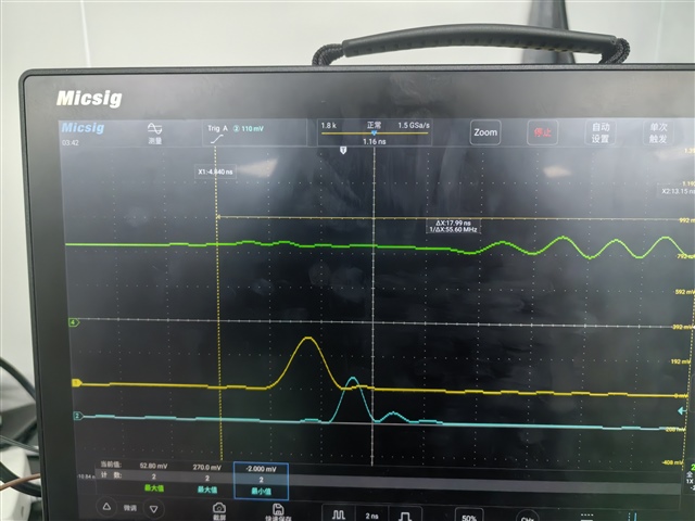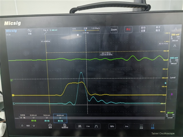上图中蓝色为输入信号最大值742mv,黄色为输出信号,绿色为SENSE_IN-。此时输出才类似方波脉冲。按理说我IN-输入了50mv的阈值电压,输入只要超过这个值就应该被甄别从而输出方波脉冲,请大佬帮我找找可能的原因。