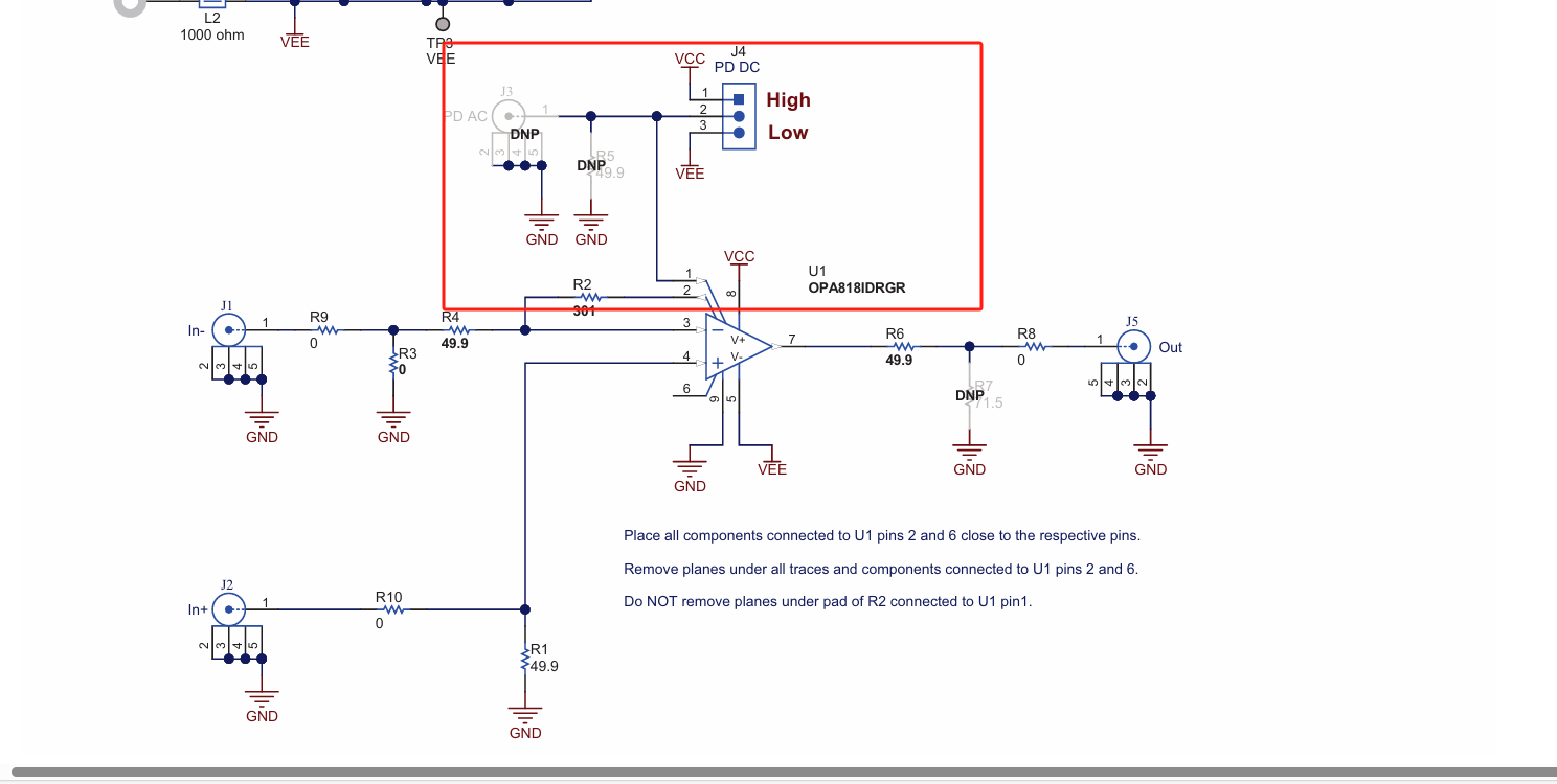 OPA818DRGEVM是给你PD连接的2种状态接VCC或者VEE。