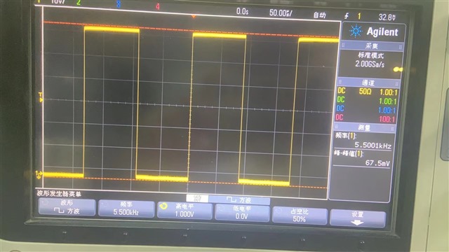 After consulting the OPA858 Op Amp EVM User’s Guide, I noticed there are limitations on the supply voltage range (VCC – VEE), as well as input voltage range restrictions. To stay within spec, I adjusted VEE to 0.4 V and VCC to 3 V. I also set the input square wave to have a low level of 1.00 V and a high level of 1.01 V. However, the output still only showed a Vpp of 10–20 mV, far from the expected gain of ×7.