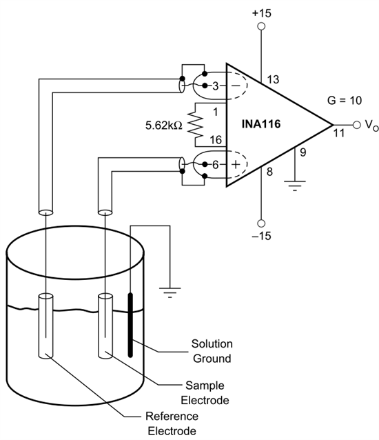 大家好,我看说明书上116PA的最低电源是+-4.5V,我用+-5v按照说明书上测量PH电极的接法在面包板上搭了一个测PH的电路,可不管怎么输入信号,怎么调节增益电阻,11脚输出始终都是mv级的乱调,望大家帮我分析一下,我哪里接的有问题?谢谢大家