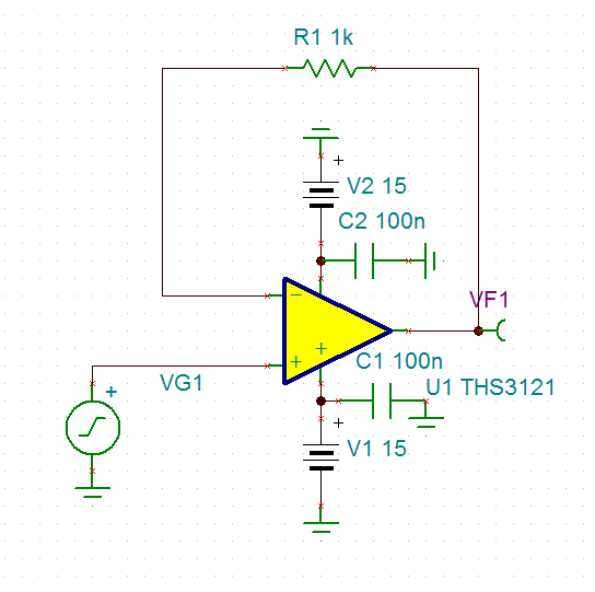首先看到OP07的带宽典型值为0.6MHz。第一感觉是就算做不到600kHz的电压跟随至少500kHz能做到吧,再差点100kHz能做到吧,更不济20kHz能做到吧?但是我试了一下只能到15kHz左右。为什么呢?