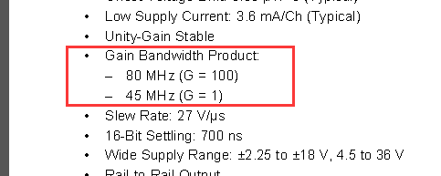 所以,运放的实际带宽要根据增益带宽积和压摆率的较小的一个来算。只看其中一个是不可靠的。PS:在高速运放的运用中,因为寄生电容的存在所以增益带宽积也会受一定的影响。