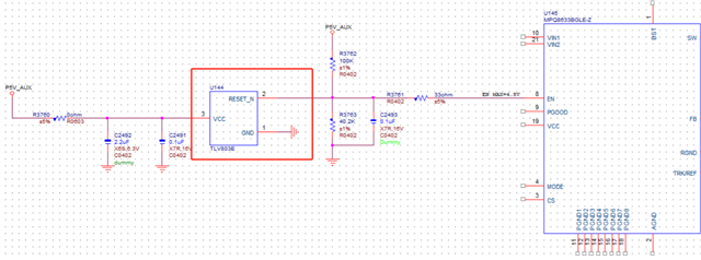 目前我的疑问:为什么上了监控器件,会导致P5V_AUX抖动时间那么长?这个抖动时间是不是跟延时时间对应,假如我上450ms延时,掉电的抖动时间变成了450ms?如果是这样,我们EN的抖动就没法消除了。
