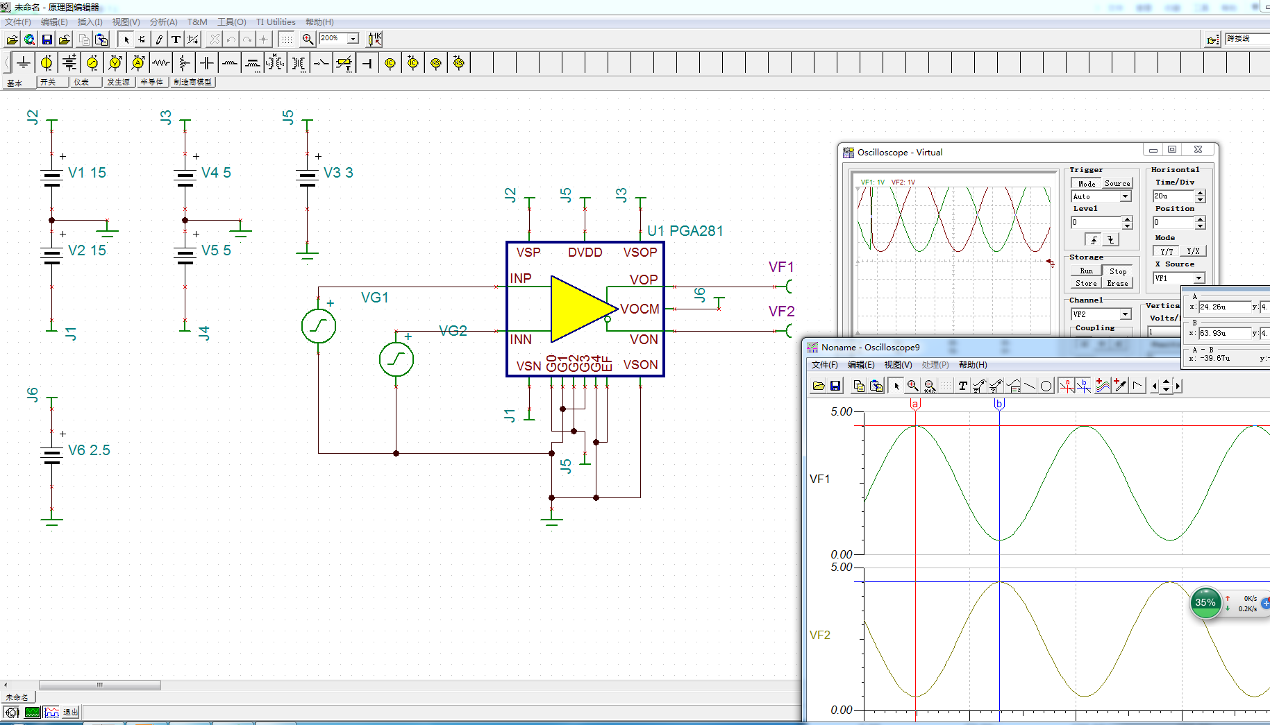 2、我采用VSP=15V,VSN=-15V。VSOP=5V,VSON=0V。DVDD=3V供电,VOCM=2.5V。但是输出正常,如下图