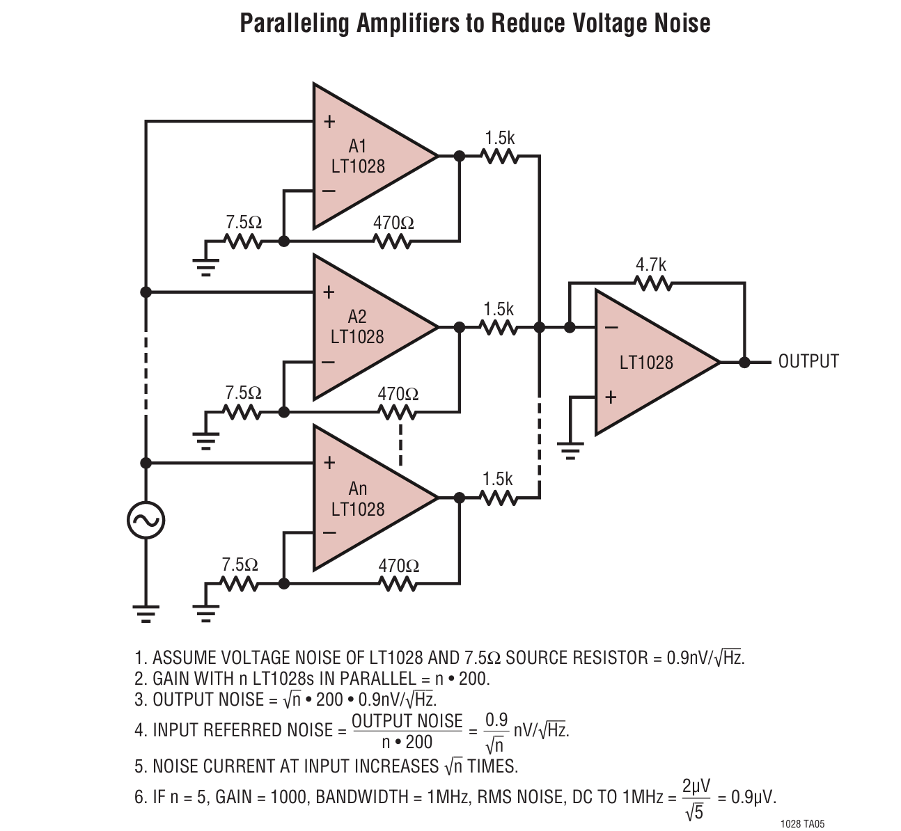 Hi, I want to build a “N”-Stage Parallel Amplifier with opa37. The full power bandwidth up to 1MHz, the gain can be smaller. Please tell me how to calculate the value of resistors, thanks.
