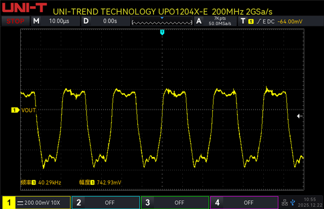 我已购买opa192,但是按我之前的原理图实际测出来波形仍然是振荡的,请问为什么您的原理图辅助运放的输出端连接上了他自己的反相输入端,我想测vout2以推算出vos。您的原理按图强制vout2=0v这样确实不振荡但是我无法推算出vos了(Vout2=(VOS+IOS*RI)(1+RF/RI) 当 IOS*RI<<VOS则有 VOS≌(1+RI/RF)*vout2=Vout2/(1+RF/RI))。下图1是我实测的vout处的电压,图二是vout2处电压(无您原理图中辅助运放的输出端与其反相输入端的连线)