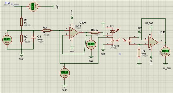 如题,采用TIL300做光耦隔离,第一个TLE2022做电压跟随屏蔽前级阻抗,第二个TLE2022做电压跟随,但Vout无输出,已知电压如下: