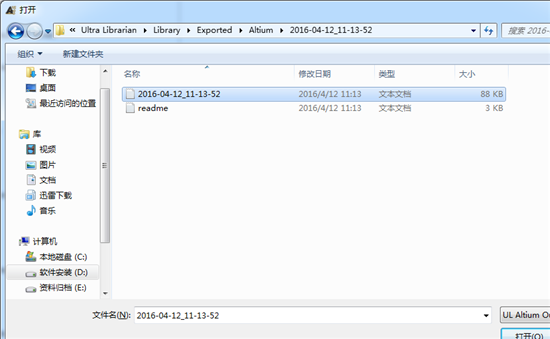 将复制的内容在DXP中打开,选择打开文件,然后将复制的内容粘贴到文件名栏,或者最上边的路径栏中,完成后就可以看到出现了这三个文件,选择红框所框起来的那个文件,也就是UL_Import,选择之后打开。