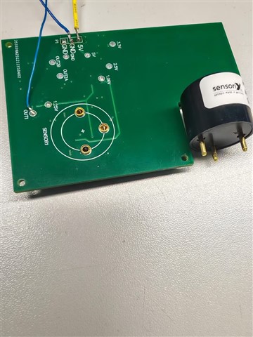 • 你好,目前传感器的安装方式是通过镀金的插针直接插到 PCB 板上的,目前所有的电化学类型传感器都是采用这样的安装方式,在线缆上面屏蔽的话目前没有想到特别好的处理方式。另外,我如果在电路上把 VBIA 电源的 1.06V 改为 0V ,那么输出信号就干净了,另外 1.06V 是由外部可调线性电源供电提供的,也尝试过使用电池供电,仍然会有。目前传感器和PCB的形式是这样的: