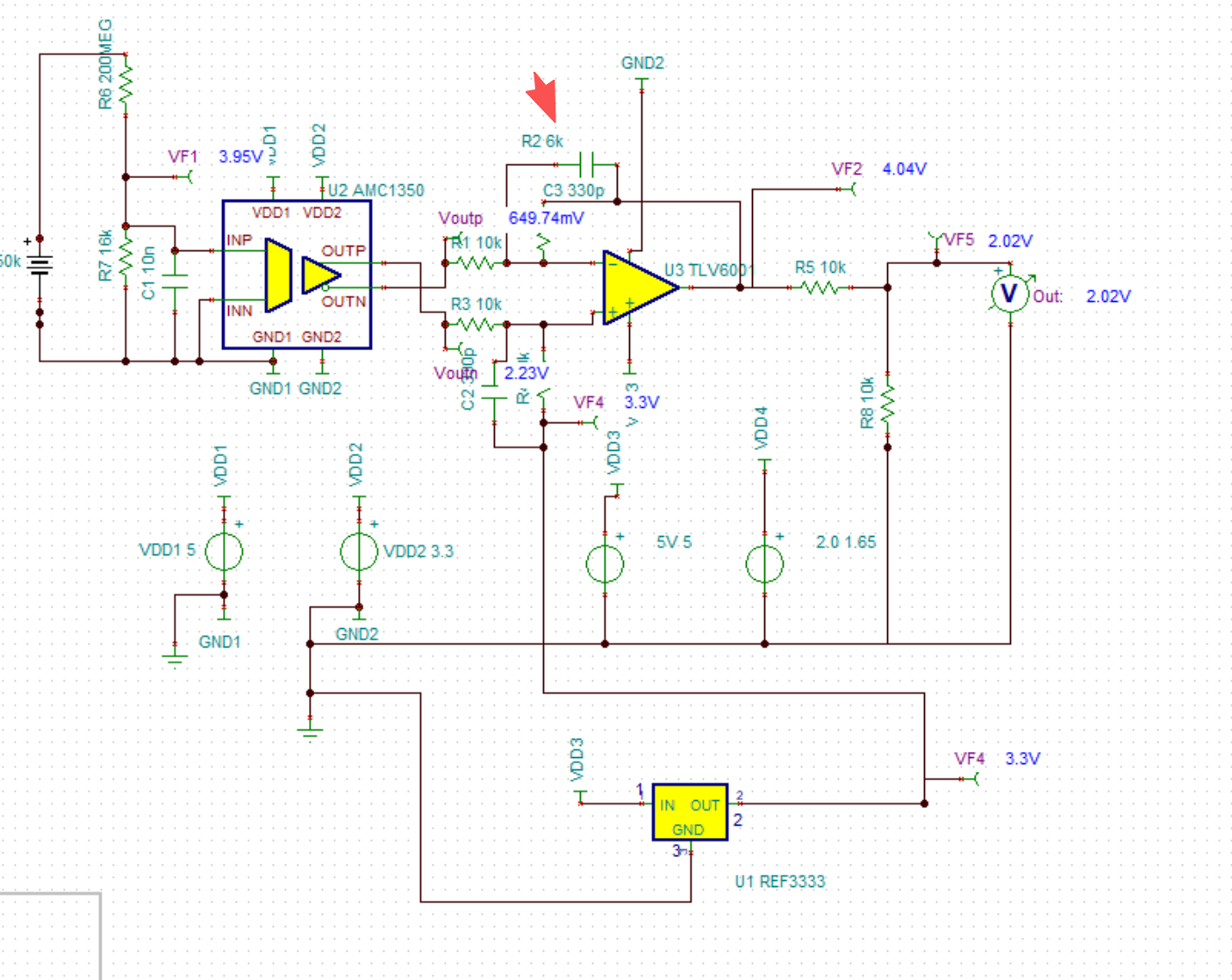 AMC1350: 我使用AMC1350加TLV6001电路问题
