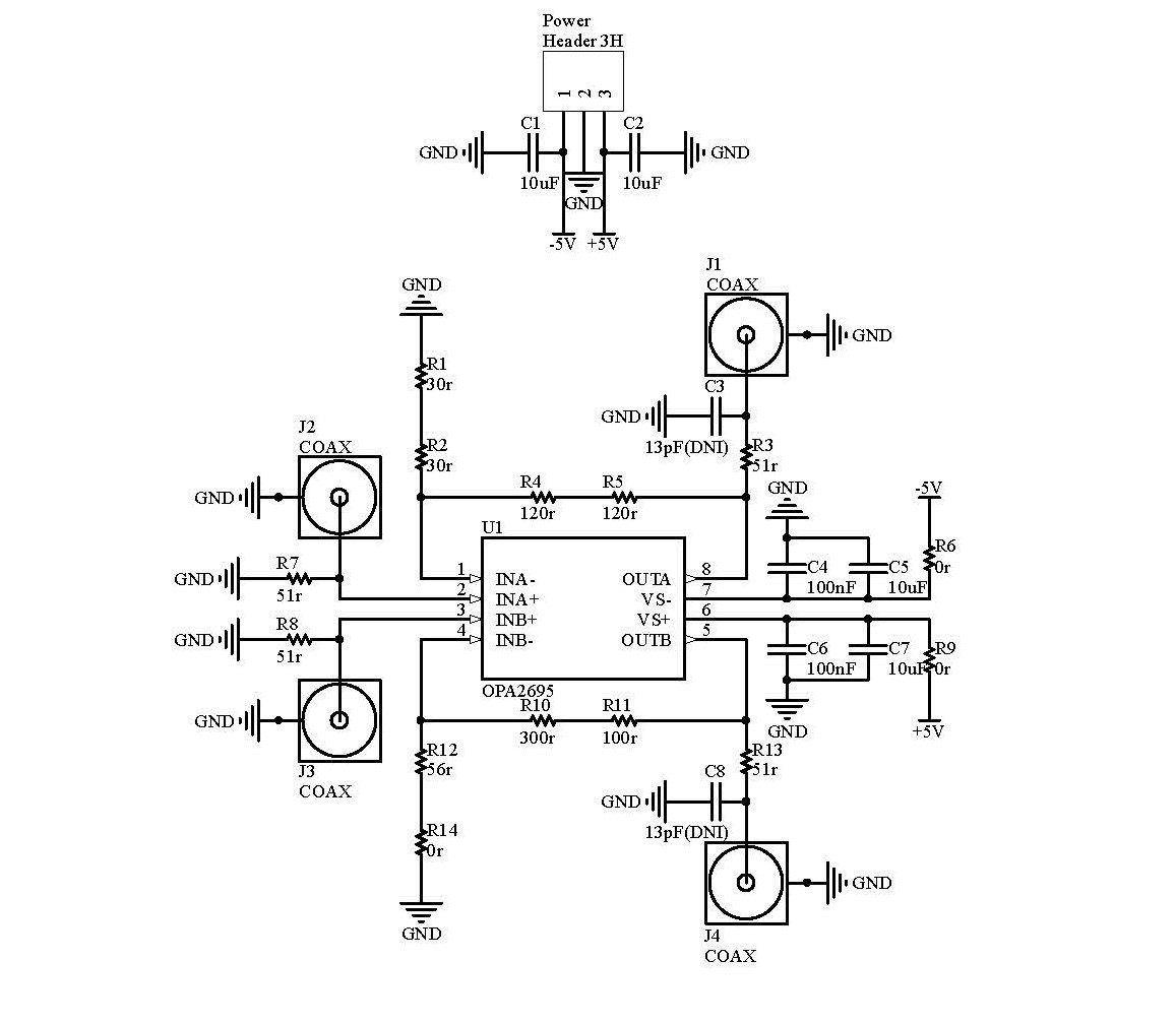 信号输入源和负载端也需要50欧姆匹配。就是说同轴线的末端都需要接个50欧姆电阻。