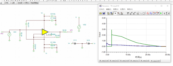采用opa695用TINA-TI仿真一个时延放大电路,输出的信号有尖峰,请问是怎么回事?时延是2.5us后放大器开始工作。