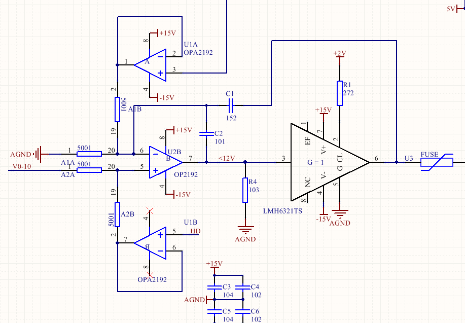 如图:现在在做一个howland恒流源,之前用用buffer是采用buf634,现在项目要求增大电流,所以换用了LMH6321(DPAK8),现在电流可以达到目标值,并且也做了散热,但是芯片还是很烫很烫,其中VIN输入为 0 ~10V信号,无论是在0V 还是在10V都是比较烫的,所以请教下这电路还需要哪里改进,先谢谢了。