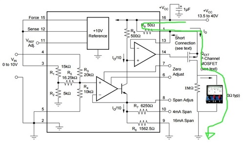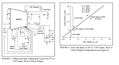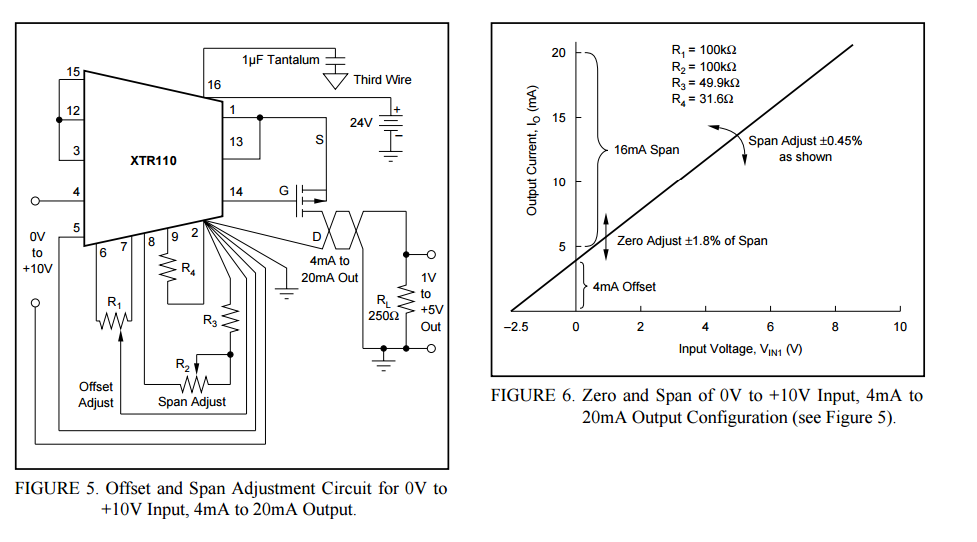 最近在使用XTR110,输入范围为0~10V,输出范围为0~20mA,电路是按照datasheet上的参考设计设计的,场效应管用的是MTP8P08,但是遇到了一些问题,就是不管我的输入为何值,输出居然能达到220mA,并且不随输入而变,好奇怪啊!