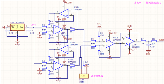 用ref3030+opa2335做恒流源,一打开开关,5V供电,输入电压就直接被拉低到1点几伏了,输入电流达到了1点几安,没想明白问题。
