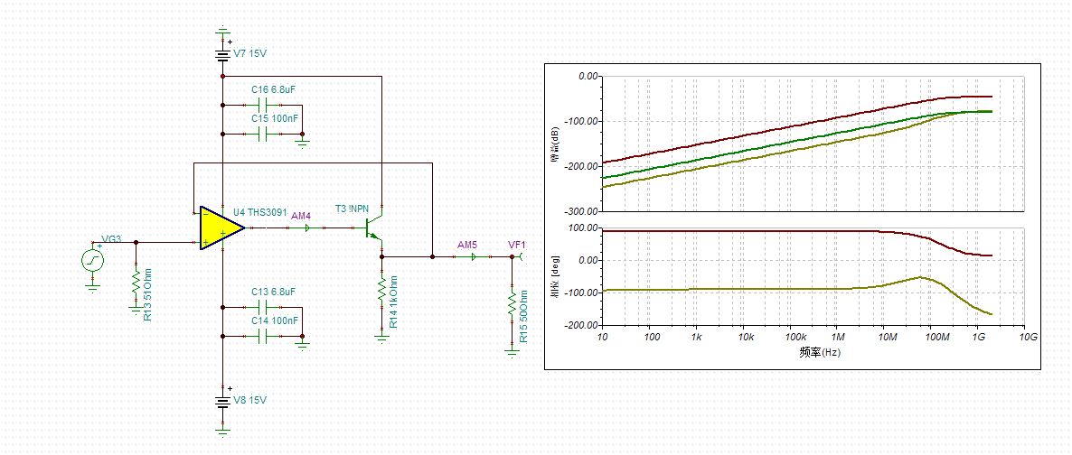 2. 三极管的输入电容和电阻对运放构成负载,需评估运放是否足以驱动这样的负载。