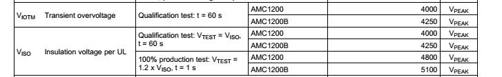 问题2:VISO Insulation voltage per UL 高达4000V,这个是隔离电压,那为什么会有60s的承受时间,既然有,那么这个电压是瞬时电压,并非电源等级