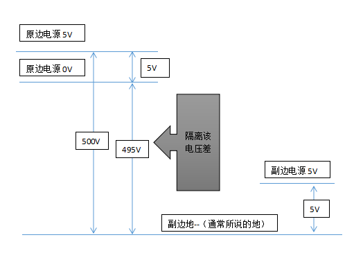 隔离是指原边和负边的电压等级。比如原边DC500V,负边都是低压侧,可能只有24V。中间需要隔离,有工业等安规要求。不是你理解的这样使用的。
