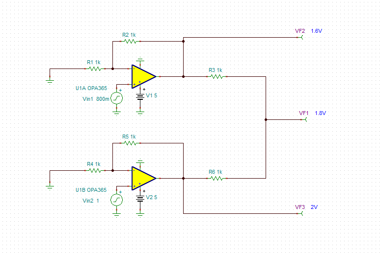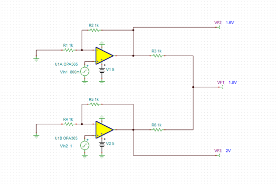 仿真以上双运放跟随器并联,输出电压是1.65V,