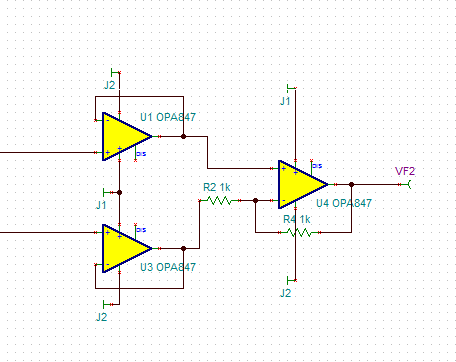 请问跟随器后的那级OPA847怎样匹配电阻网络比较好呢?谢谢指导