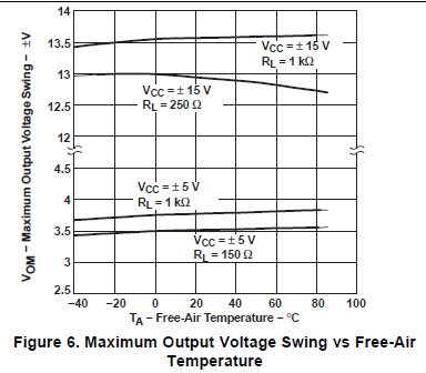 二个看output voltage swing,你看这个图,1k负载时swing基本在1.5V左右,你想要0V输出,和-2V是距离是2V,所以可以