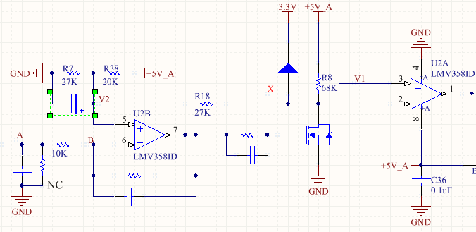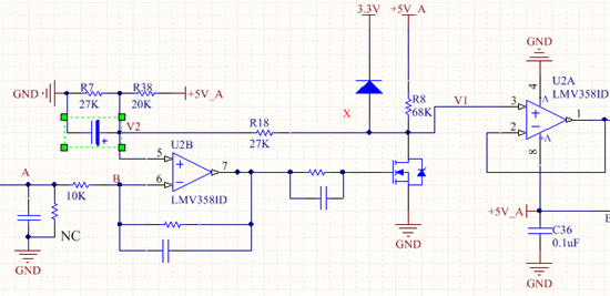 另外理论计算LMV358的5脚上的电压应该在3.1V左右,实际却不是