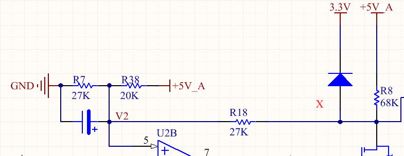 不对,你可以算下,先不管3.3V,可以计算得到V2是3.1V,然后,算X点电压,3.6V,所以3.3v还是导通的,对吧。
