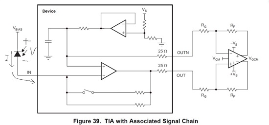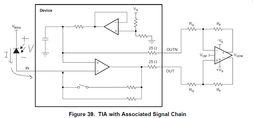 我的电路设计基本如上,想给前端的光电二极管两端加上恒定反向电压V,一直是5V,取I,经跨阻放大器进行放大。