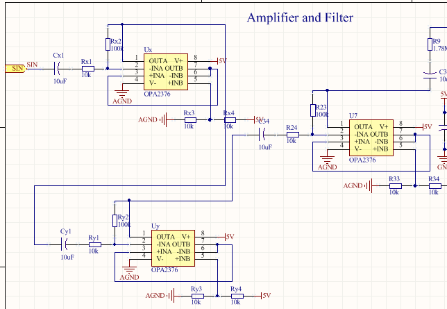 最近使用OPA2376做放大电路。发现把它用做前级的时候,电路不能工作。但是如果是两级连接而且信号是从第二级送入,那么第二级可以正常工作。在这种情况下,从第一级送入信号,信号依然不能送入。电路如附件所示。