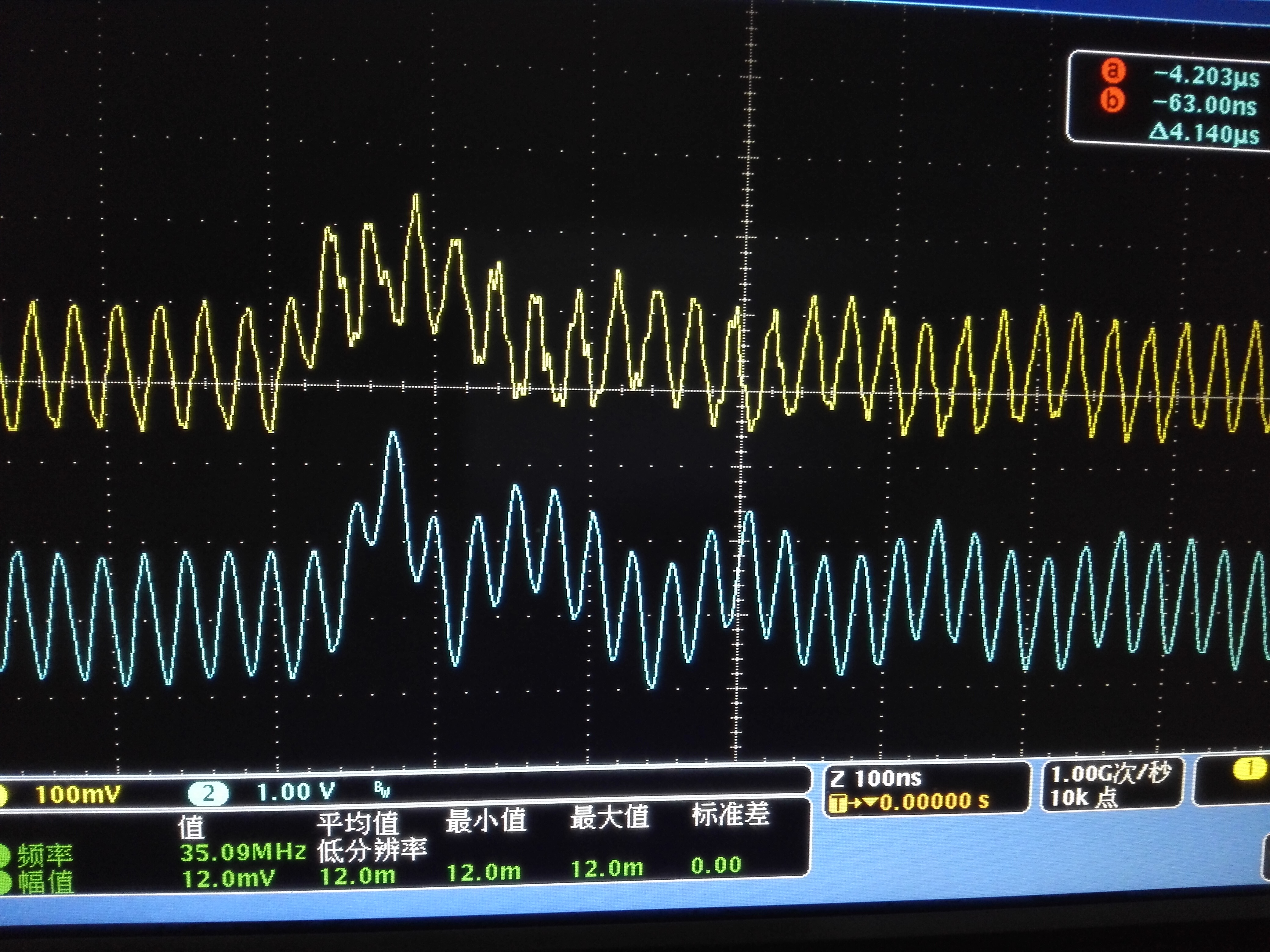 可以看到噪声很稳定,就是40MHZ左右的正弦波。