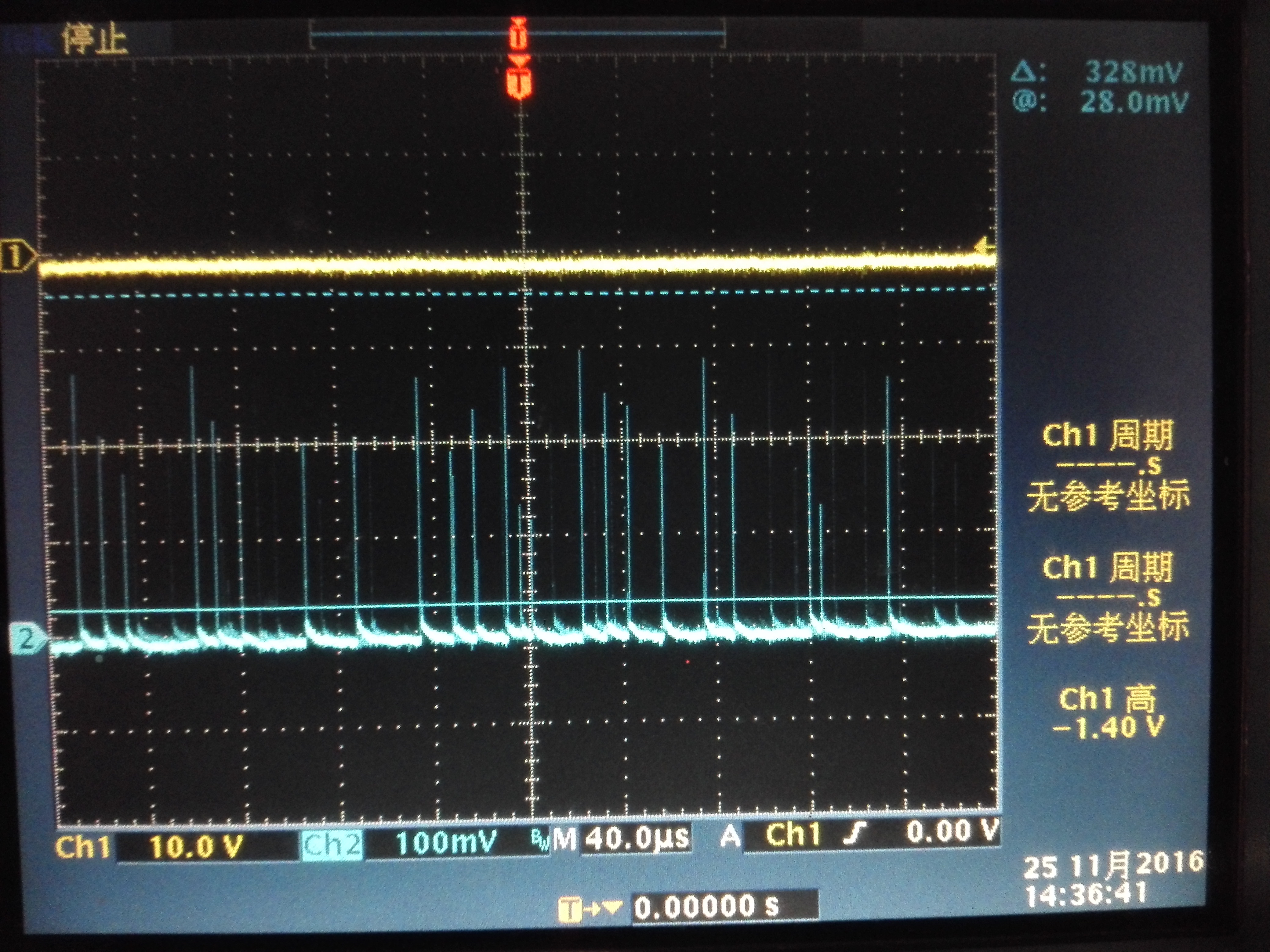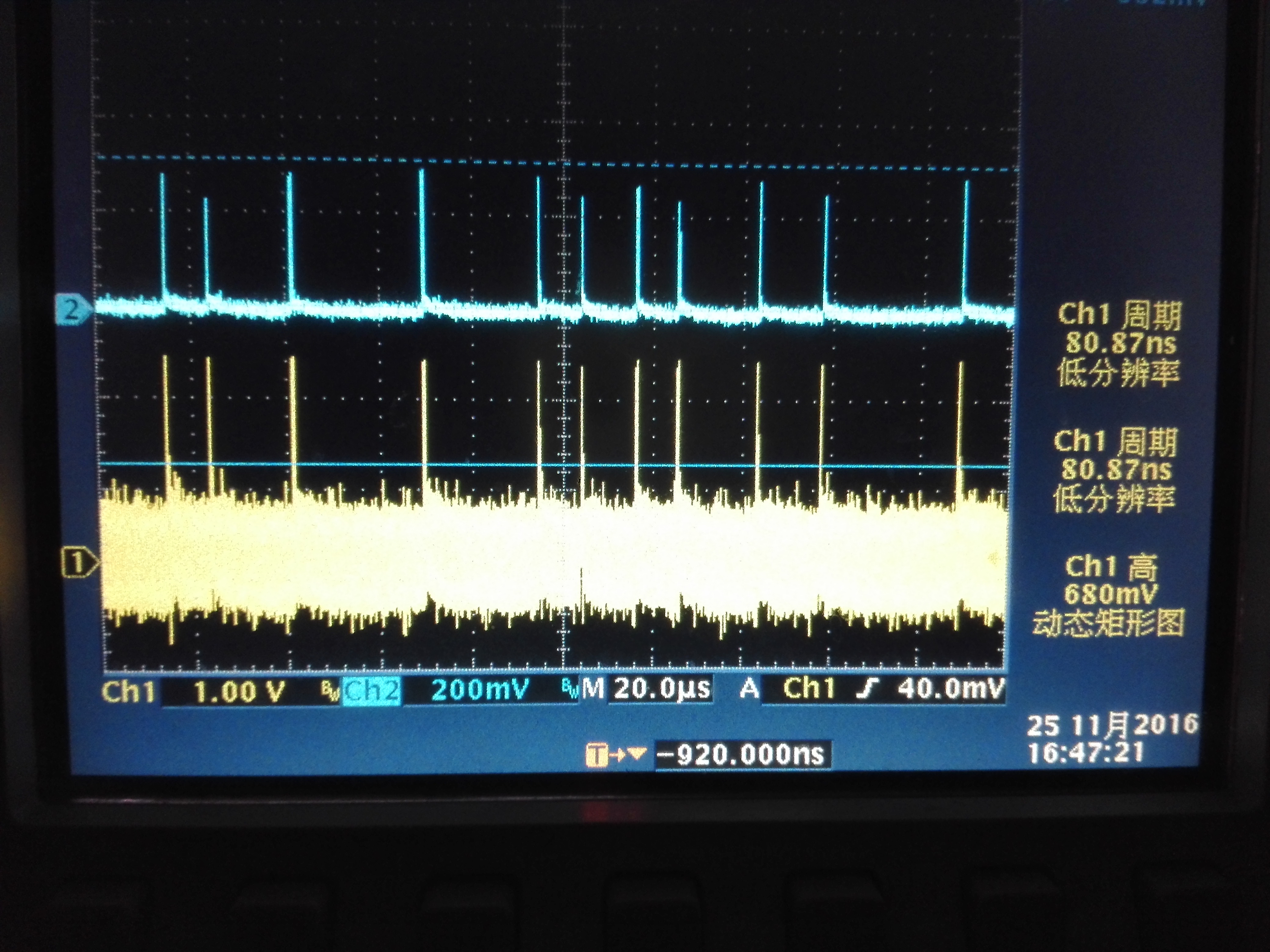 尖波之间的噪声非常大,把噪声部分单独放大来看如下图: