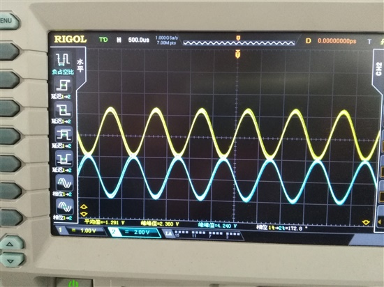 空载时输出波形如图2所示,发现相位相反,幅度不一样。图3 加8欧姆负载后输出的波形,再接喇叭后声音是突然一高一低,怀疑是不是镜像后幅度不一样造成的?