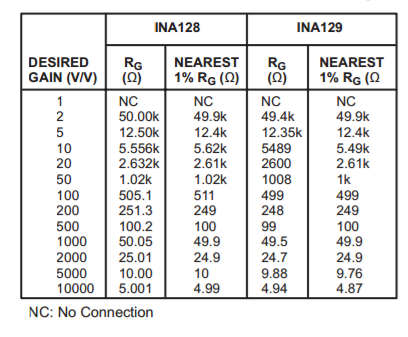 我想选择仪表放大器INA128,它的放大倍数关系为 G=1+50k/Rg
