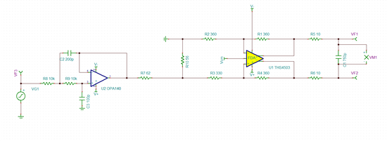 请问一下,我实际前放最后一级是OPA140搭建的有源滤波,THS4503共模电压输入是2.5V电压,用8位半数字万用表实测了THS4503差分输出两端,一个共模电压是2.53V 一个是2.44V,请问是什么原因造成的?