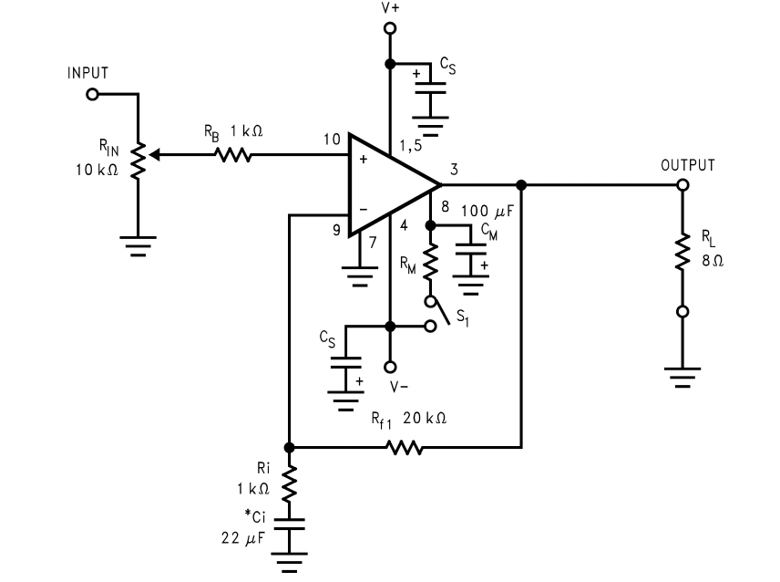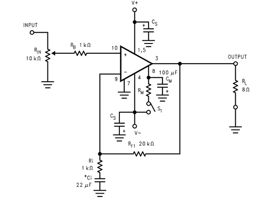 我是用手册上的典型电路搭的模块。图中RL=8欧的负载我接的是参数为8欧30W的扬声器。