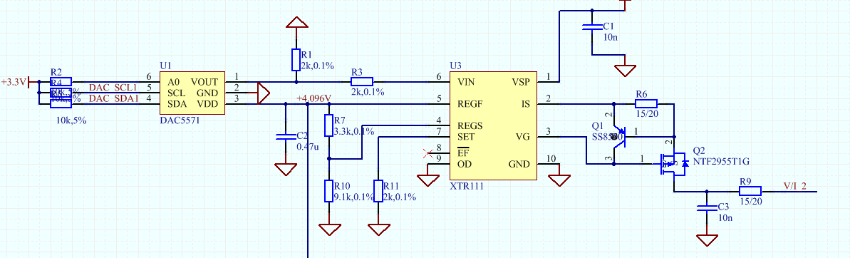 刚弄了个4-20MA的电路,调试发现不对,输出电流不仅随输入电压的变化而变化,还跟VSP的电压变化而变化,