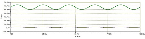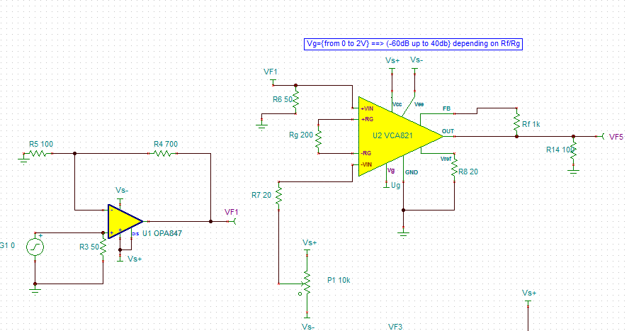 仿真使用波形发生器测试VCA821可以出现相应的波形,但是OPA847放大后的信号输给VCA821就不能出来波形。为什么?