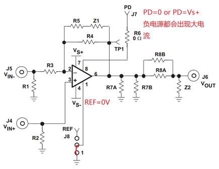 双电源供电,REF和PD脚都接到了GND,但是会出现负电源端电流不正常,正电源端的电流为0。 后面把两个脚都悬空就能正常了,是+-5V供电,不知道为什么和数据手册说明的状态不一致。