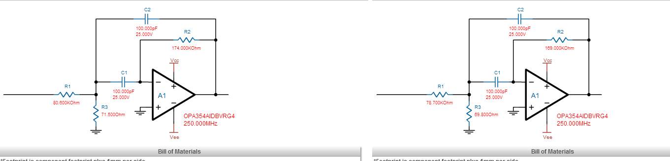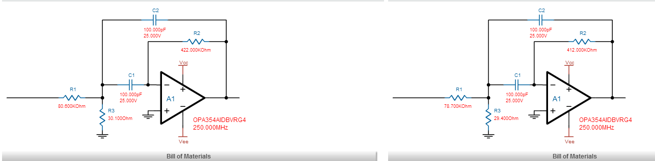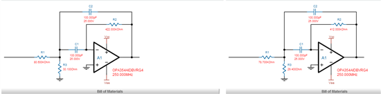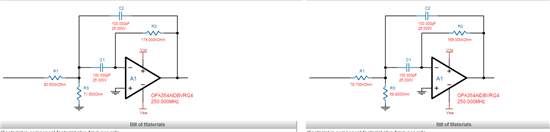 问题2:请问如何选择一款带通滤波器芯片,看增益带宽积满足是不是就行了。那opa4354是系统推荐的,电容电阻值也是系统推荐的,增益带宽积也很大,为什么搭出电路就不行呢