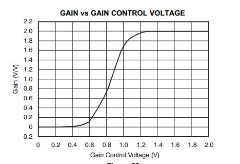 Vg和output voltage的关系可参考Figure 3. Maximum Gain Adjust Range vs Peak-to-Peak Output Voltage曲线,可以看出,随着Gain(dB)的增大,输出VPp减小,而Gain和Gain control voltage也是成正比关系(Figure22),因此,Vg增大,Gain增大,Vpp减小。