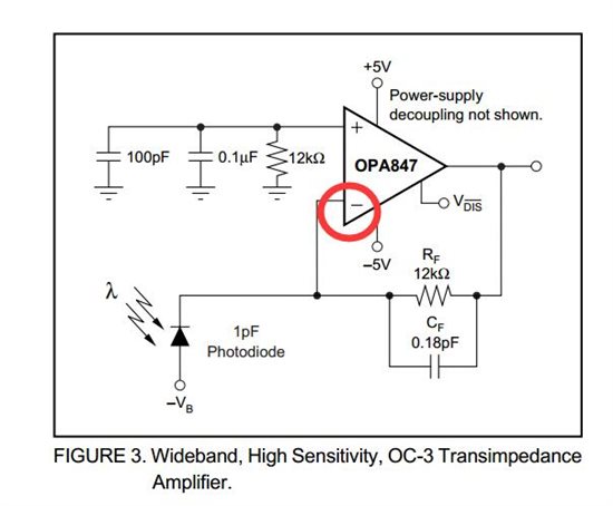 光电二极管做的跨阻放大器,光电二极管必须接到负输入端么?可以接到正输入端么,如果可以该如何接。