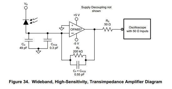 按照OPA657芯片手册给的推荐电路画的电路图,TINA-TI仿真也没有问题,为什么做出来板子实际测试的时候,输出底部(0V以下)被削顶。下面是电路图与实际测试的波形图。我将光电二极管的正负极换了一个方向接,因为按照电路图中方向,输出是负值,我直接将光电二极管反接,输出就是正的值了。当完全按照电路图接法(光电二极管与图中一样),输出顶部(0V以上被削顶)被削顶。