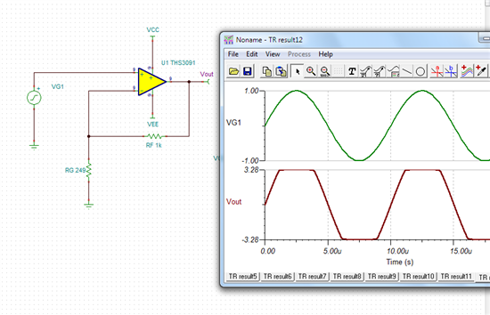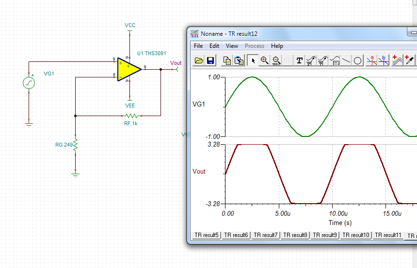我想利用运放的过饱和性质把有±5V和0V频率为2M的正弦信号变成方波,我想先把正弦信号衰减到2~3V,然后放大到THS3091过饱和状态输出方波,但我现在只有±5V的电源,不知道3091能不能输出±5V的方波信号?3091是轨到轨运放吗??