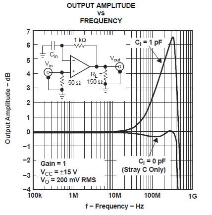 看了数据手册,认为是反向输入端的杂散电容导致的,1pf的电容,就导致幅值增益变化剧烈