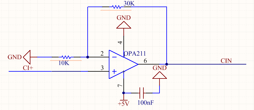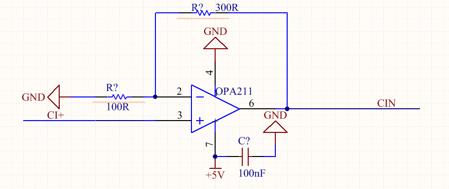 在一个高精度信号源的设计中,我使用了OPA211做互感器信号的放大,互感器输出的信号在-0.8-0.8V之间,属于小信号。因为我只需要正半周期的波形,最大的采集范围点为3.3V,所以运放的供电我采用单电源5V供电,如下为最初的设计图:
