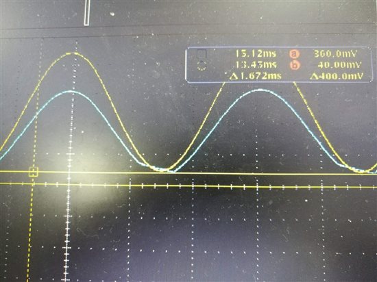 2.在同比例放大反馈电阻,由6.8K变68K,20K变200K,再进行测试,得到测试波形如图2所示.