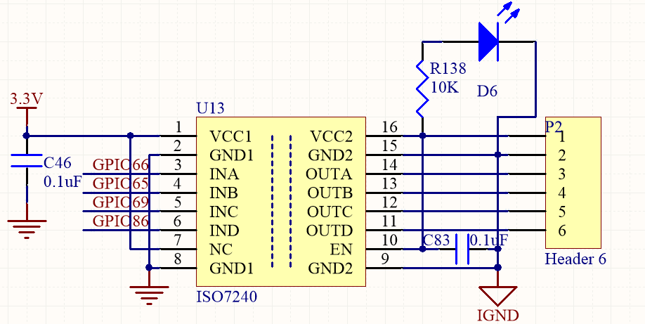 您好,按照官网推介电路,手动焊接ISO7240隔离放大器外围电路,使用信号发生器输出一个频率为1KHZ,峰峰值为1V的正弦波,并用示波器检测输出电流波形,通过示波器观察并没有输出正弦波。ISO7240外围电路如图所示,当7管脚悬空时,也不能输出信号。