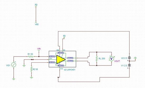 1、从官网提供的仿真实例来看,VCC和VEE分别加5V和0V,而datasheet上写的是加±2.5V,我将实例改为±2.5V,不能仿真出正确结果。请问咋回事?芯片到底加多少伏电压?